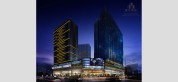 酒店大厦灯光主色调借用“星达城”的“星空”意向,把主色调定为“星空蓝”,结合立面结构造型,塑造彷如“夜空”的灯光夜景观,深邃莫测、群星璀璨。购物中心,主要通过显色性较好的暖白光还原-其立面色彩及机理,结合淡-蓝色光格栅,黄色水平装饰线,营造舒适宜人的购物灯光环境。住宅楼主要采用黄光,突出该区温馨舒适的灯光氛围。除酒店照明在节日控制为动态照明外(可控制为如"宇宙星空"的图案变化等),其他区域照明均采用“静态”照明状态运行。