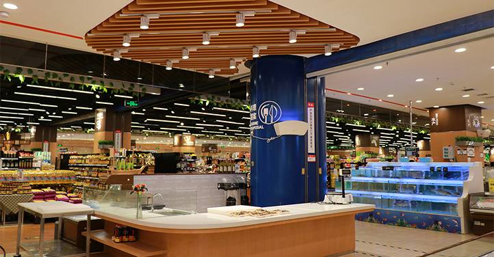 YGYC认为,超市光环境不仅要展示产品和品牌,更应站在消费者角度,提升其购物体验,激发购物激情和欲望,最终促进销售。电商时代,好的购物体验可以把消费者吸引到实体店来休闲、社交、消费。因此,本案设计目标:1.展示产品和品牌2.从设计源头做到节能,做“绿色设计” 3.提升空间光环境品质,营造休闲体验类光环境。